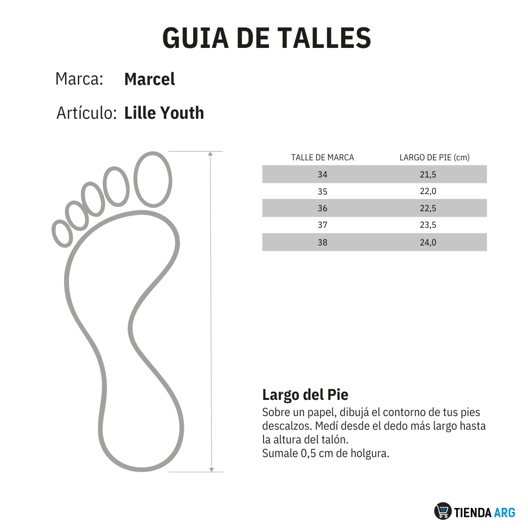 - La guía de talles ha sido preparada exclusivamente para cada uno de nuestros modelos. Podría ser diferente a la guía de talles de la marca. Antes de confirmar tú compra, consultá la guía para asegurar tú talle.